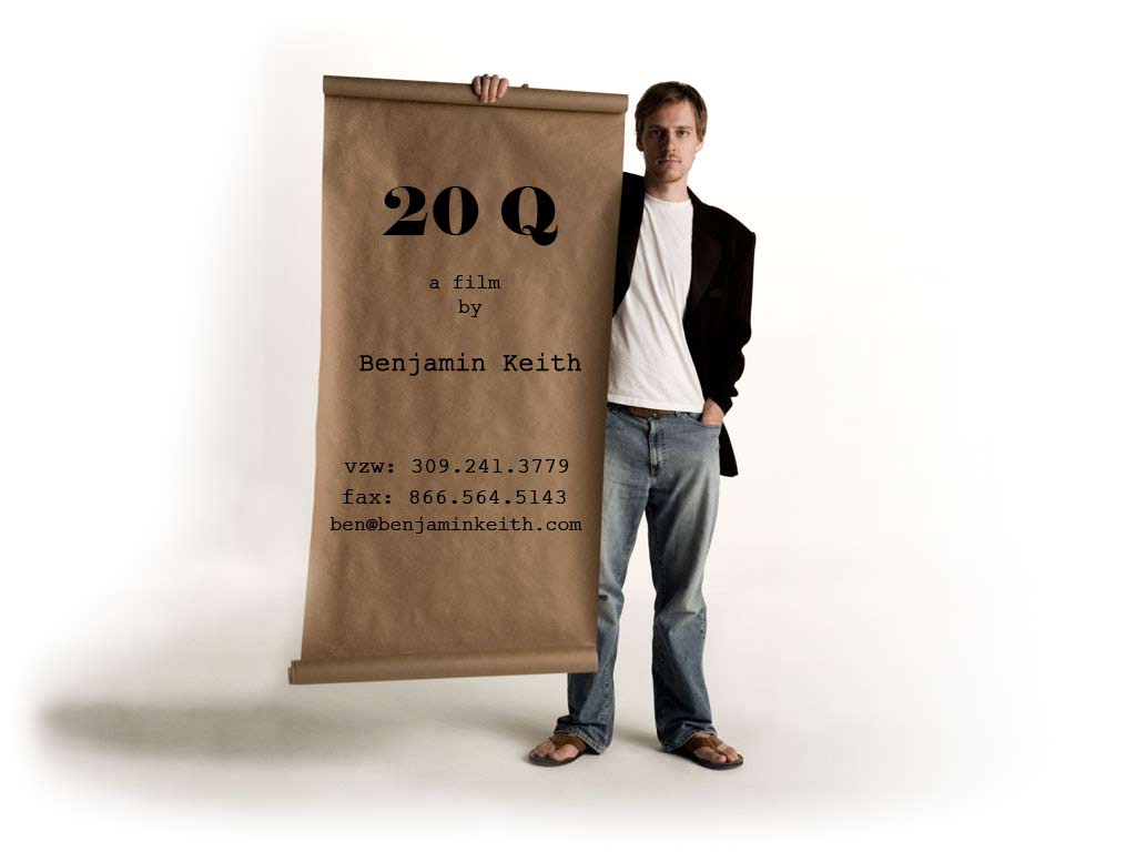 Benjamin Keith is a recent graduate of a small but up and coming film program in Tennessee. He has worked on many films most notably producing "COG" www.cogfilm.com and co-producing "Secret of the Cave" www.SecretoftheCave.com; "20Q" however is his directing debut. Benjamin now lives and works in Illinois while his wife Sarah J. J. Mitzelfelt who produced “20Q” pursues her education in the medical field.
